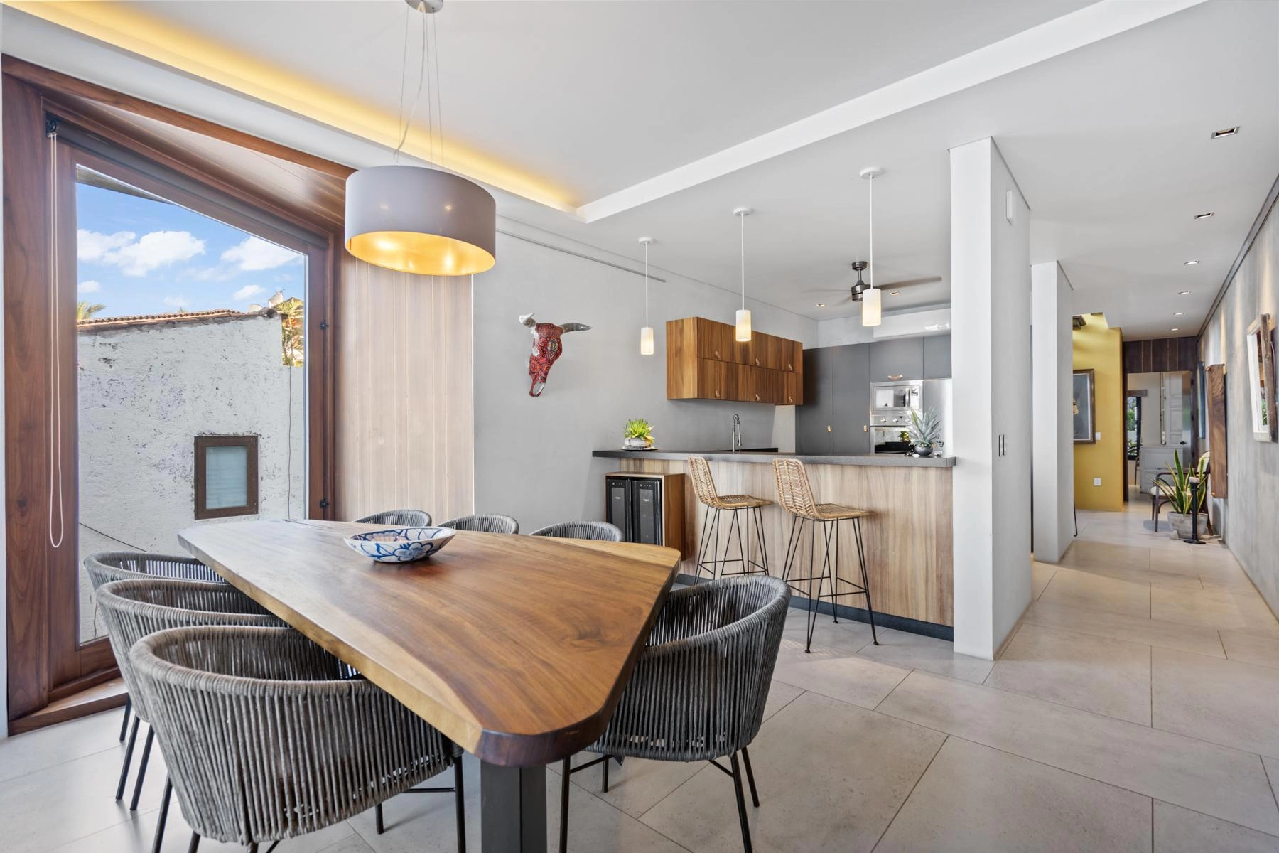 Inside, the home unfolds across two levels filled with glass, natural light, and sweeping Pacific views. The primary suite opens onto a private ocean-view terrace featuring a private dipping pool, while the spa-inspired ensuite bath creates a serene retreat above the coastline. Upstairs, a dedicated office/den offers flexibility as a third bedroom, ideal for maximizing rental income or accommodating guests. On the main level, the living room and modern kitchen extend seamlessly onto an ocean-facing terrace with dining for eight, perfect for sunset dinners under the Sayulita sky. The design enhances both everyday comfort and vacation rental performance, positioning this residence among the most desirable beachfront condos for sale in Sayulita.