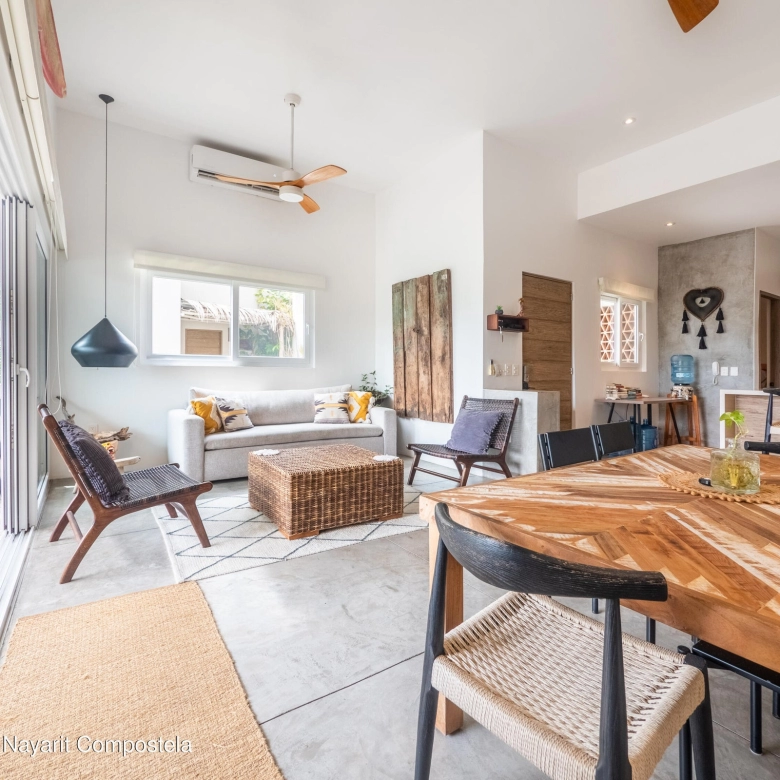 Casa Chingon Sayulita is a modern 2 bedroom, 2 bathroom condo offering 219 square meters of sleek design and breathtaking ocean views. Set within a secure hillside community, this residence belongs to an exclusive four unit building with a beautifully landscaped shared pool.