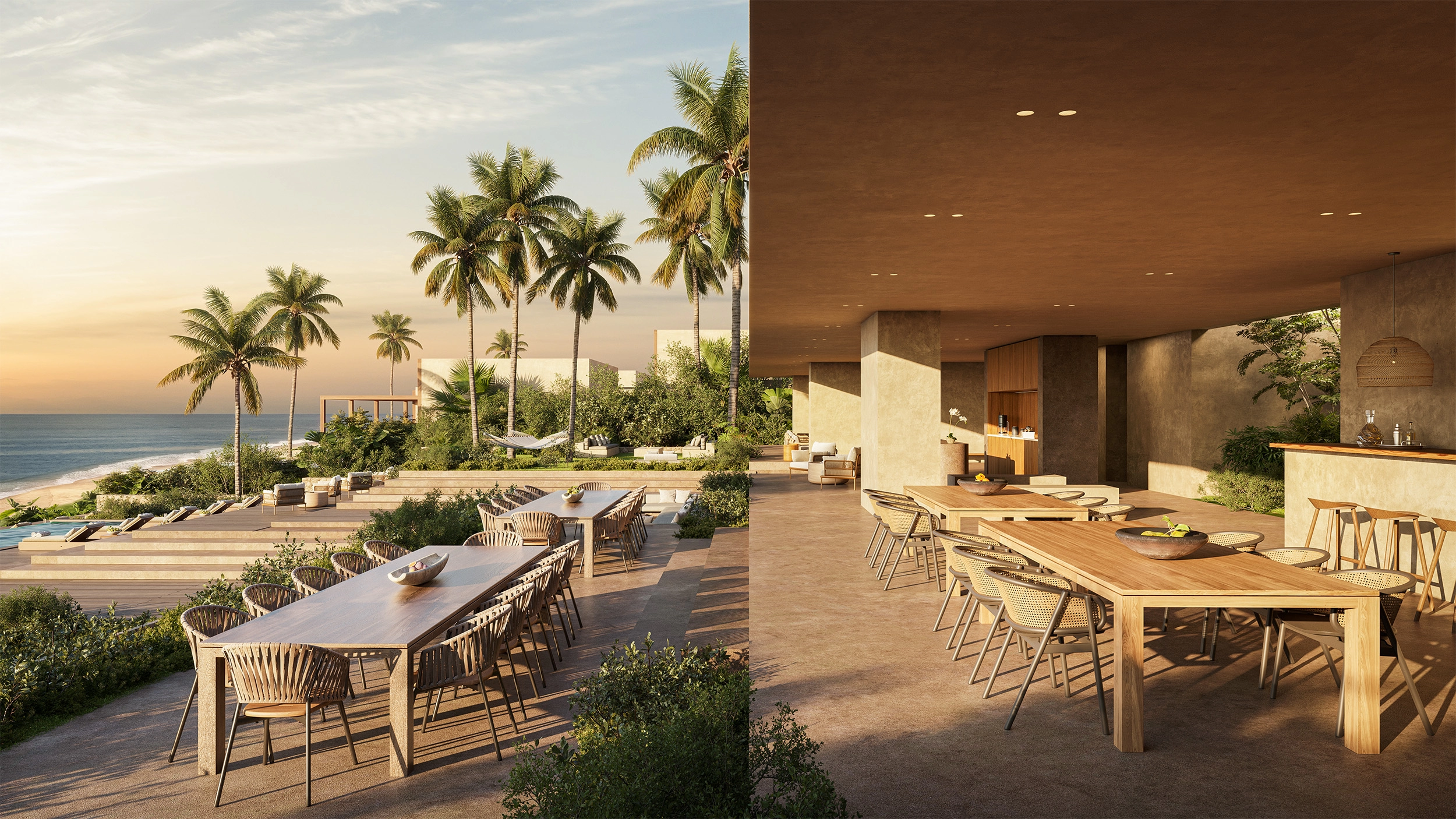An open-air sanctuary featuring an infinity-edge pool, relaxed dining, poolside bar, members’ lounge, and barefoot putting green. Perfect for paddleboarding, snorkeling, or simply soaking in the sunset.