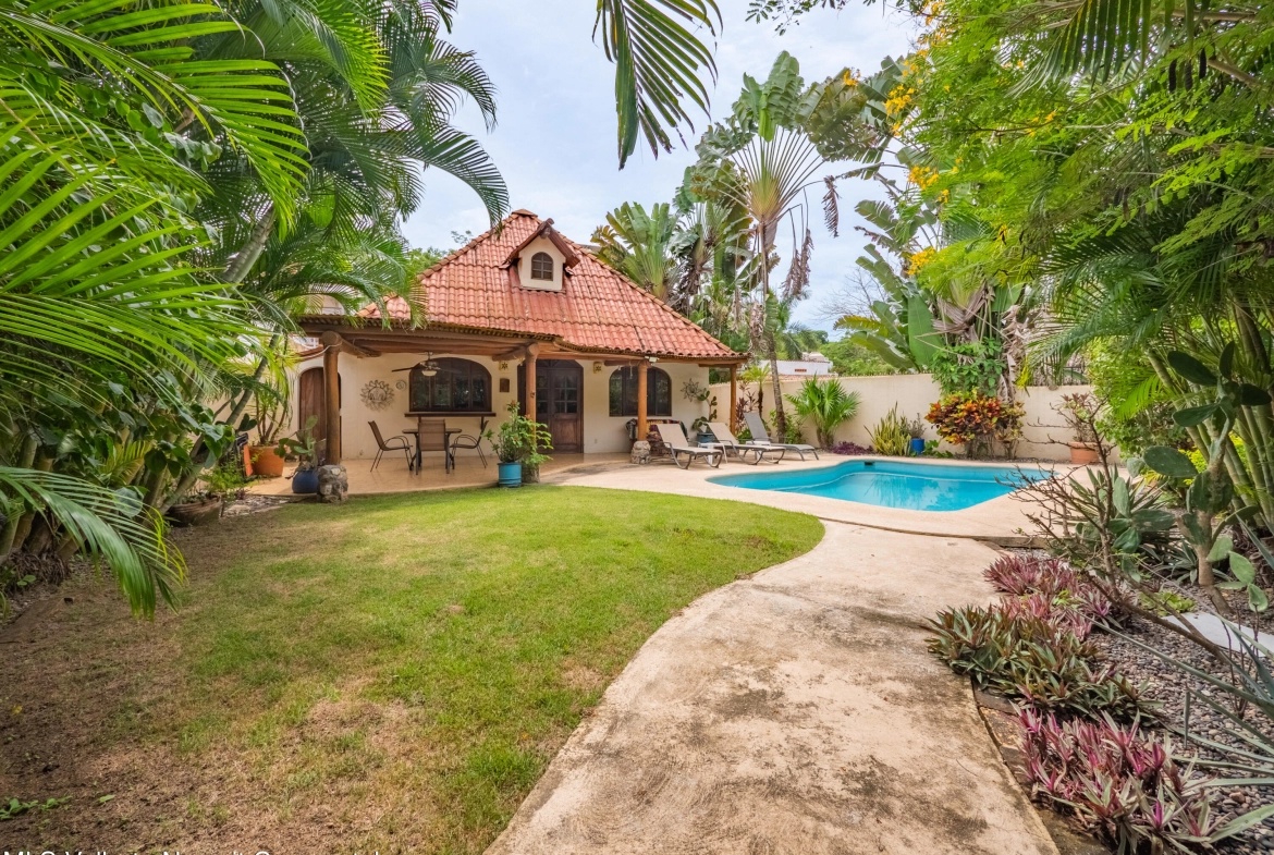 The main residence features 2 spacious bedrooms and 2 bathrooms, flowing into tropical gardens and a sparkling saltwater pool. Designed with traditional Mexican accents, the home embraces indoor outdoor living with shaded terraces and poolside relaxation areas.