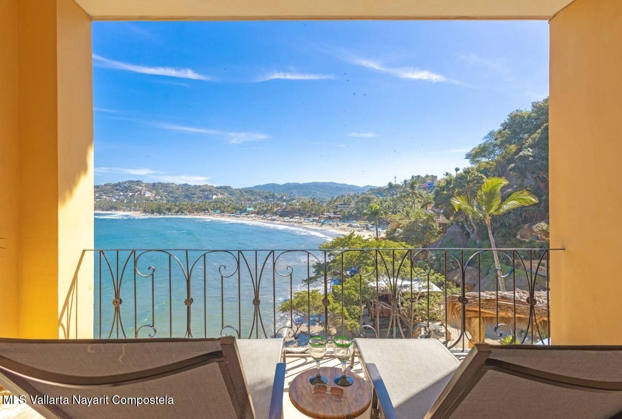 Located within the prestigious Villa Amor beachfront resort, Hotelito 303 is a beautifully designed ocean-view studio offering a rare opportunity to own prime Sayulita real estate just steps from the beach. This elegant 722 sq ft (67.12 m²) studio condo for sale in Sayulita features a king bed, private balcony, and breathtaking views of the Pacific Ocean.