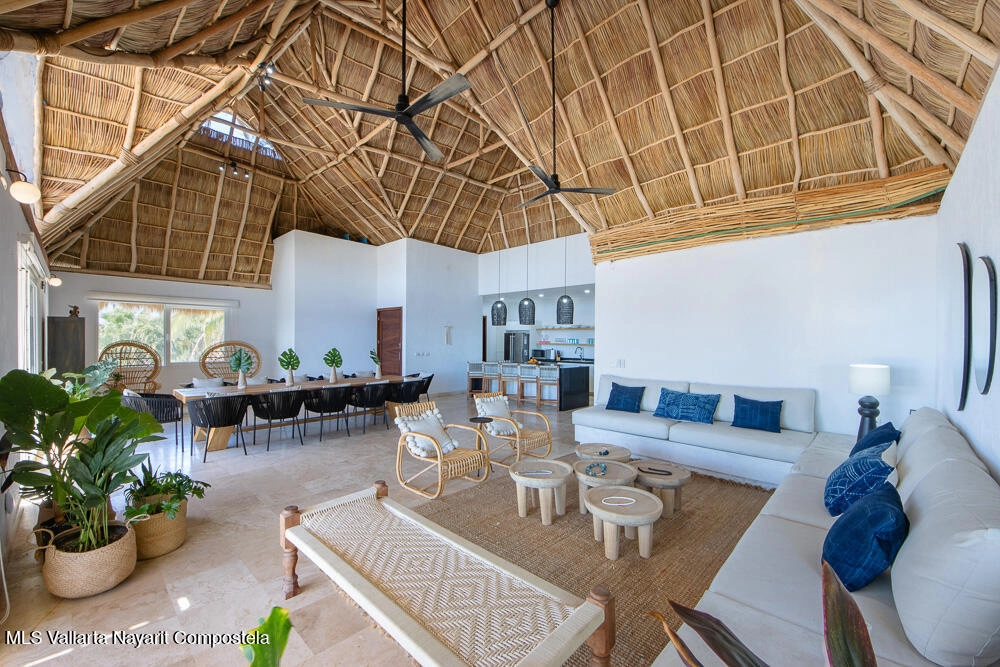 This stunning ocean view penthouse in Sayulita offers breathtaking panoramic views of the Pacific Ocean combined with a contemporary open-concept design that seamlessly integrates the kitchen, dining, and living areas. Floor-to-ceiling windows flood the interior with natural light while creating a perfect indoor-outdoor connection to Sayulita’s tropical coastal scenery.